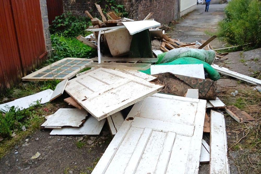 The first incident, on August 10, 2024, involved the dumping of items from a house renovation, including several internal doors, a cream bath, a bathroom sink with a seashell-like pattern, a large amount of timber, carpet underlay, carpet, lino and bags of building rubble in a lane connecting Gower Street with Tucker Street, Briton Ferry.