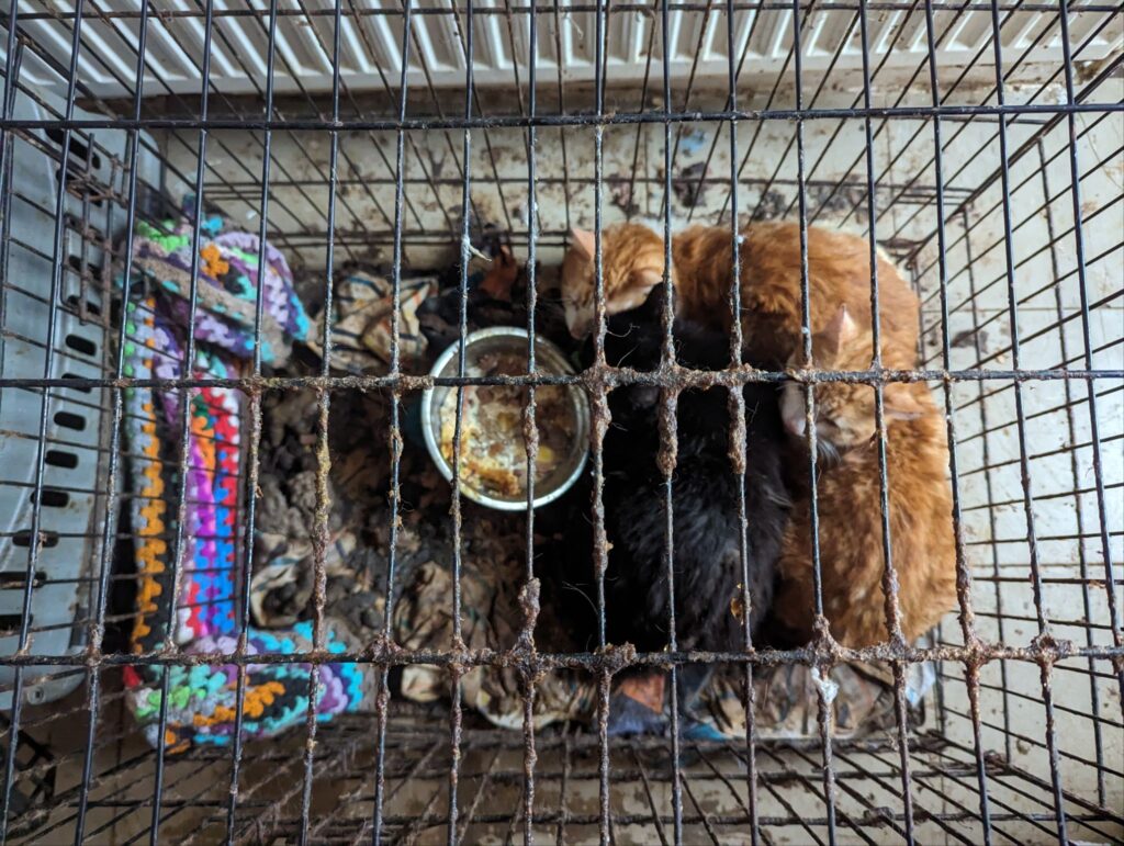 “Both the crates and the cats smelt very strongly of cat urine, the smell was extremely strong, despite being outside.