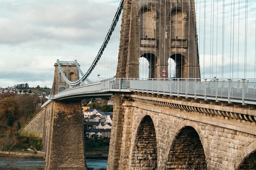 The Grade I listed structure is the second oldest operational suspension bridge carrying vehicles in the world. Opened in 1826, it crosses the Menai Strait between Anglesey and the mainland.