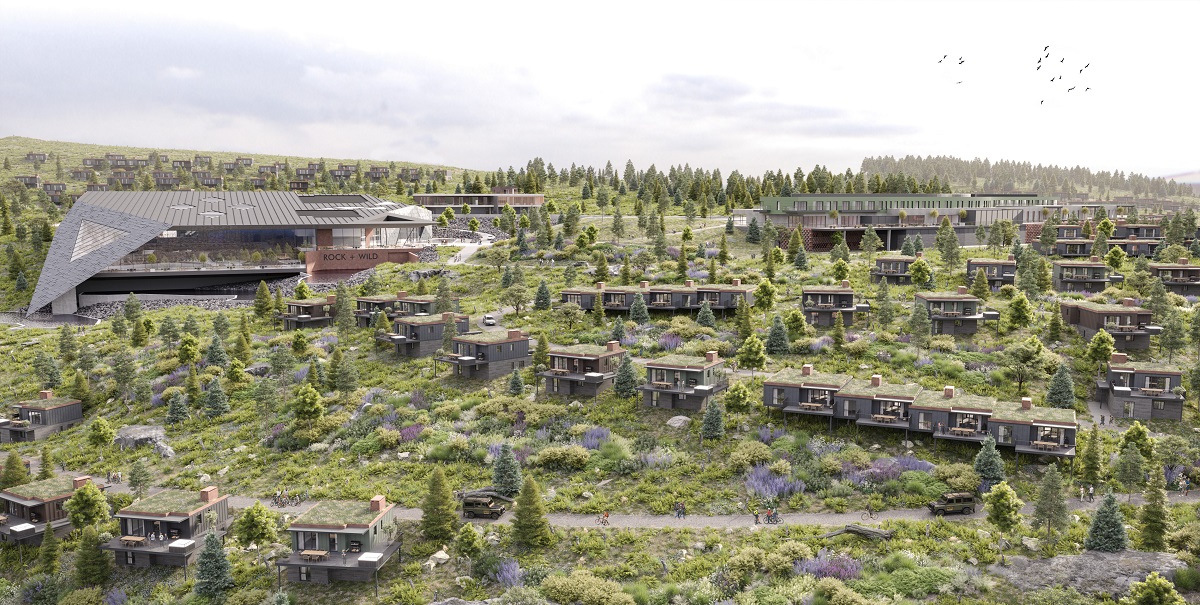 It will also be home to a modern spa and restaurant with viewing area, a bouldering building with a small retail plaza, along with a forest hub and arrivals building.