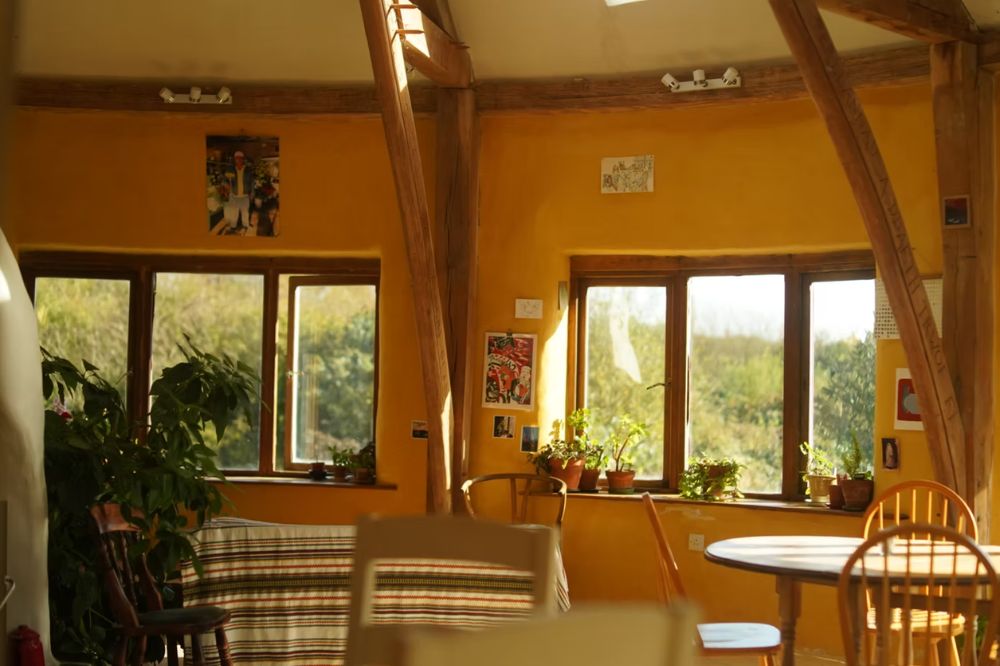 The bright interior offers comfortable seating in a rustic dining area, complete with a shelf of books to borrow, while a small seating area outside boasts views of rolling fields and the centre’s gardens.