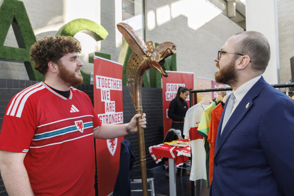 One of the most eye-catching attractions was the Football Association of Wales’ carnyx – a towering, S-shaped bronze horn inspired by those used by ancient Celtic warriors. The dramatic instrument, created for the national football team, was demonstrated throughout the day.