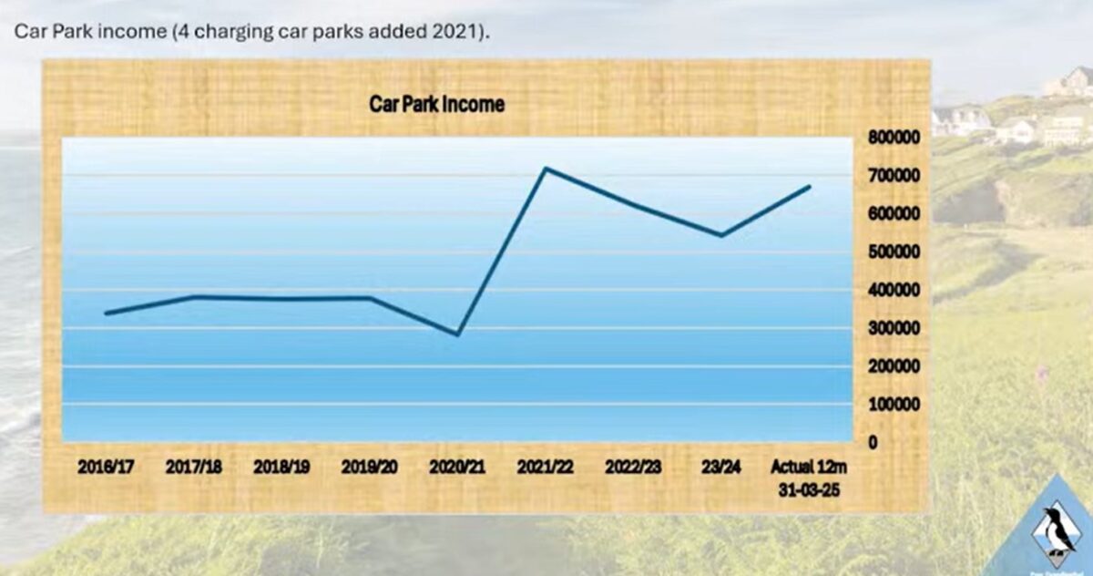 It lists statutory pressures linked to the parking charges including “a substantial contribution to the Coastal Bus service annually,” and financial support for keeping 10 public toilets open for a two-year period running up until April 2026 at a cost of £111,000 a year.