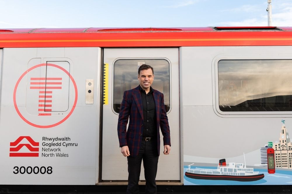 To highlight early progress, Cabinet Secretary for Transport and North Wales Ken Skates travelled on a newly wrapped train on the renamed Wrexham to Liverpool line. The design features places along the route, chosen after consultation with passengers.