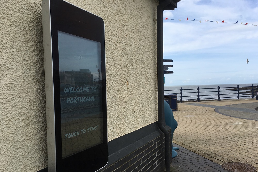The large touchscreens were a joint project between PTC and Credu consisting of interactive touch screens with tourist information available covering Porthcawl and surrounding area.
