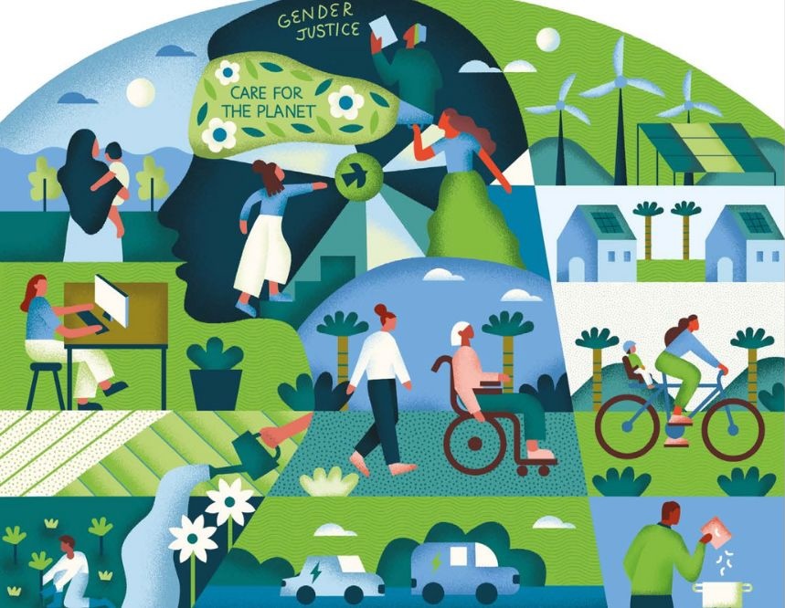 The report argues that current systems – shaped by patriarchy, neoliberalism, and extractive economics undervalue care and marginalise those most affected by climate change, particularly women, disabled people, and racialised communities.