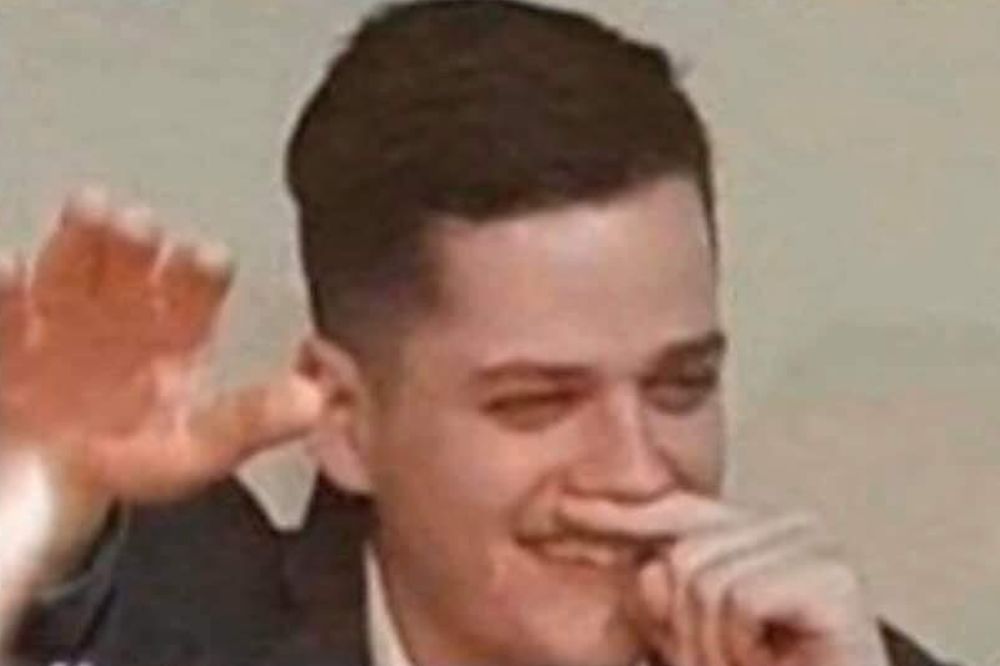 Where the photo was taken and what prompted Edwards to make the hand gesture is not known.