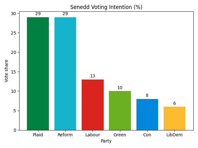 Dr Jac Larner, of Cardiff University’s Wales Governance Centre, said: “This poll shows another small drop in support for Plaid Cymru, putting them level with Reform UK at 29%.