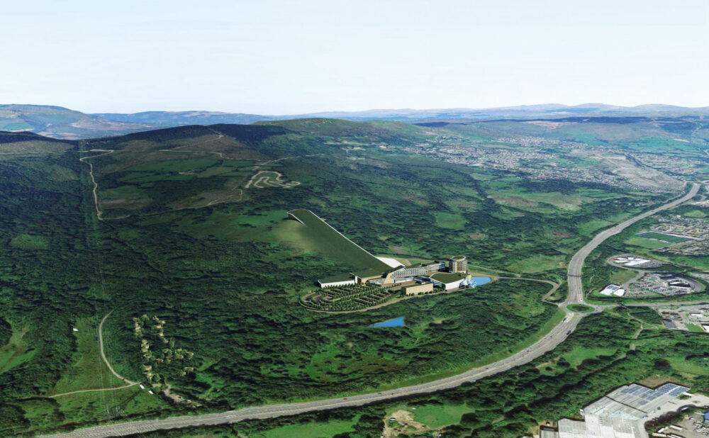 The Rhydycar West development, on land to the south west of the A470/A4102 roundabout in Merthyr Tydfil, includes an indoor ski slope, water park, indoor activity centre, outdoor activity centre, up to 418 bedrooms of hotel accommodation, up to 30 units of woodland lodge accommodation and up to 830 car parking spaces.
