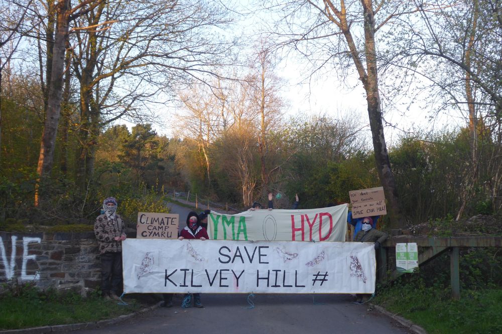 A small number of people from a group called Climate Camp Cymru and some local people held placards at the access lane leading up the Swansea hill where a company called Skyline Enterprises has started on the early phases of its development.