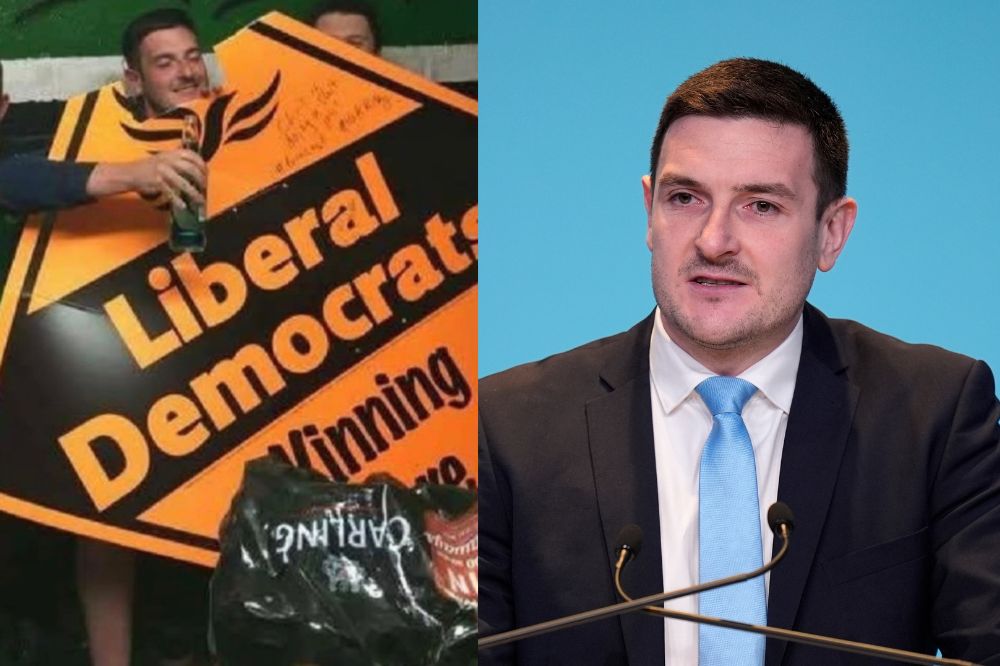 Reform Senedd candidate posed with destroyed Lib Dem placard during drunken night out