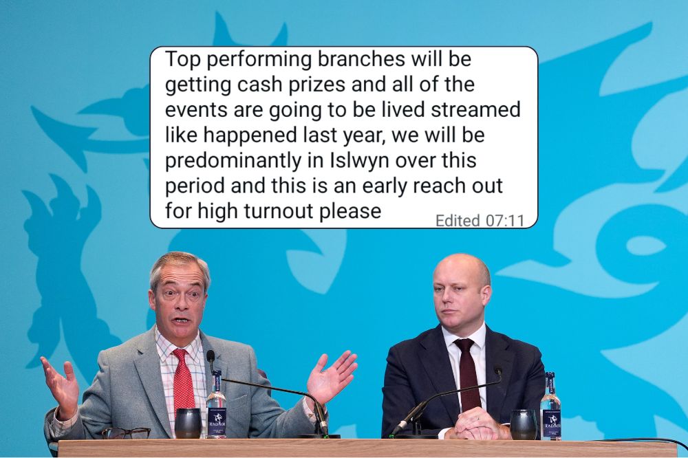 Reform UK has been mocked after a leaked text message revealed that the party is offering “cash prizes” to its Welsh branches as a sweetener to entice members to canvas during the Senedd election campaign.