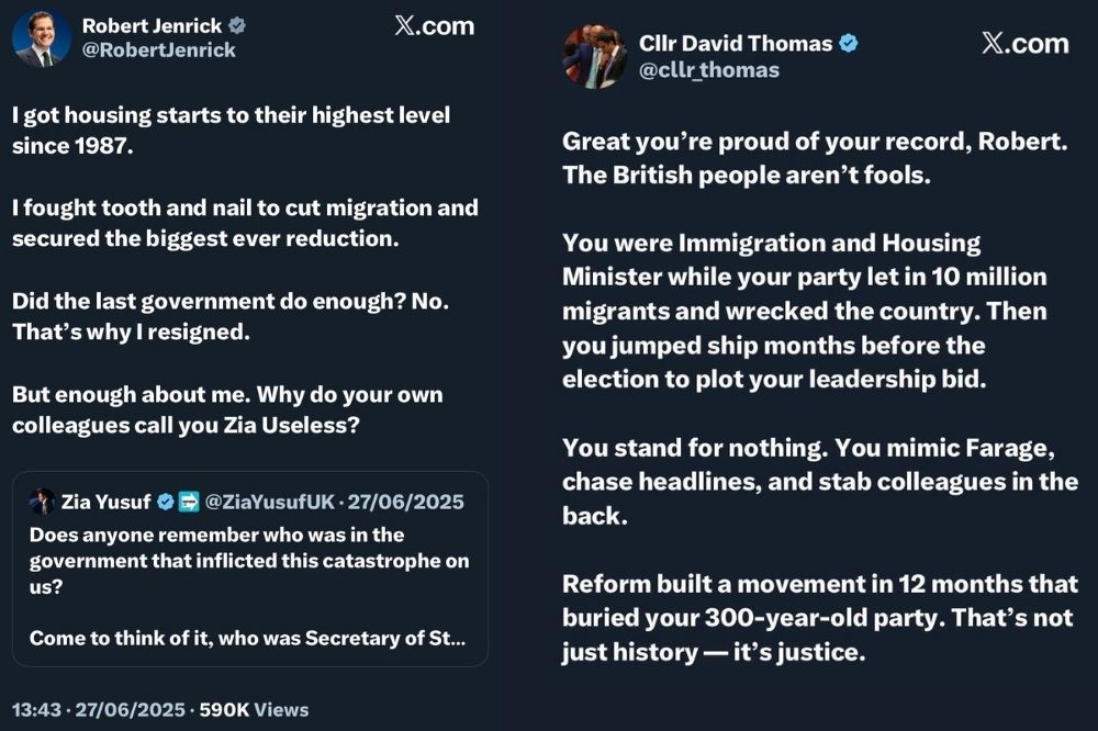 Jenrick – who was the shadow secretary of state for justice at the time – hit back, mocking Reform’s policy lead, branding him “Zia Useless”.