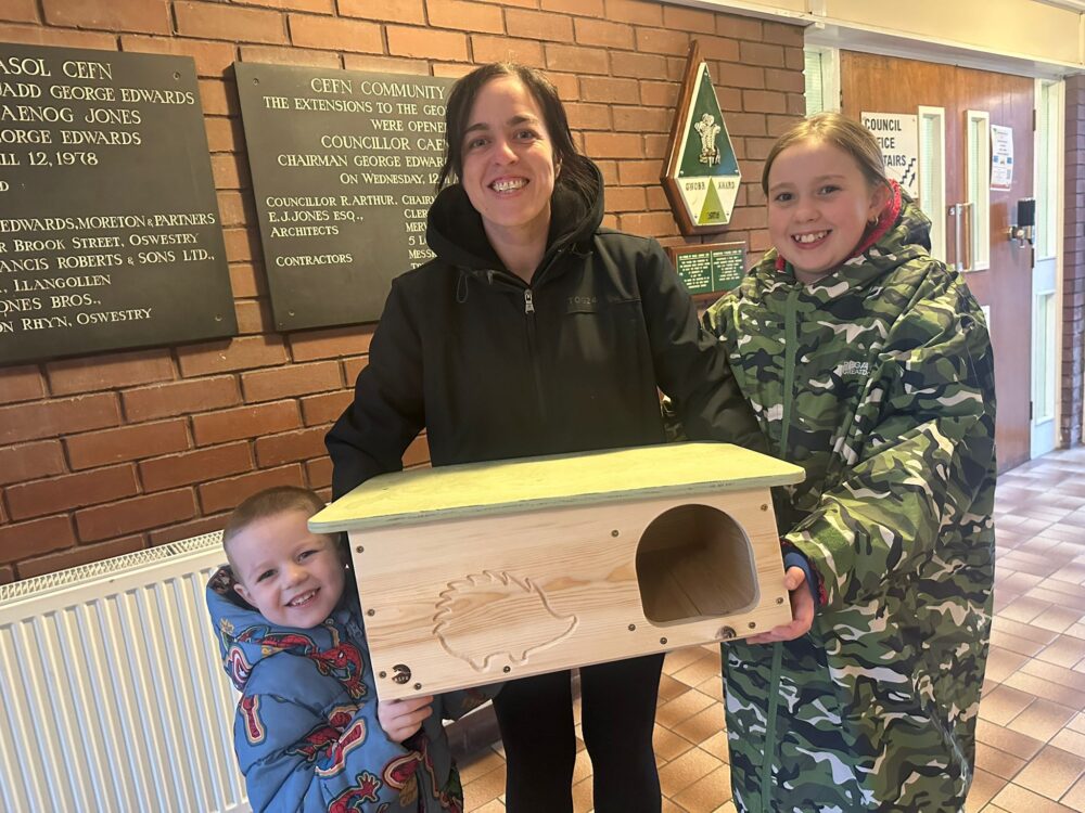 In response, Cefn Community Council, working in partnership with Wrexham County Borough Council through the Local Places for Nature Grant, funded by the Welsh Government, has delivered free hedgehog house kits to residents and schools.