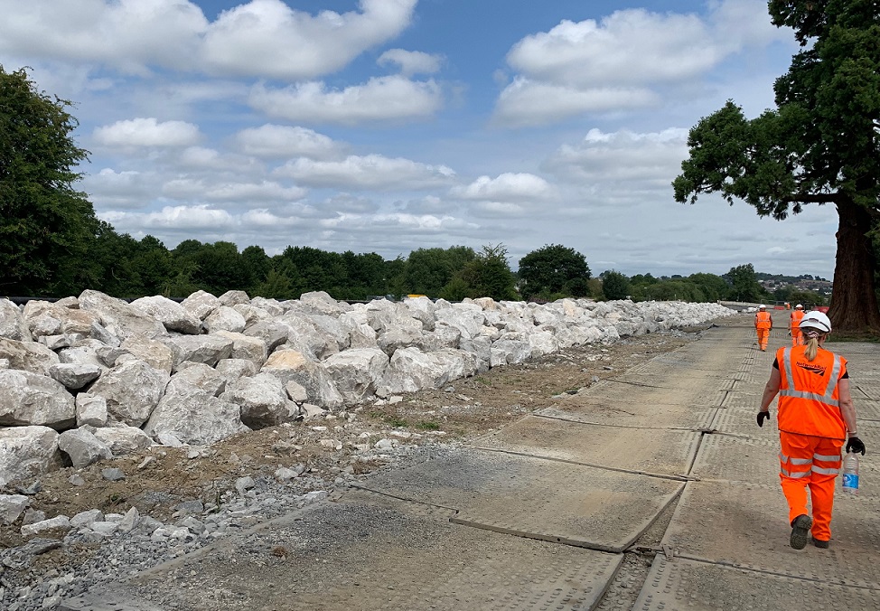 To minimise future delays and disruption, Network Rail quickly got to work in a multi-million pound project installing 10,000 tonnes of rock armour along the bank of a-half-mile stretch of the Cambrian Railway line.