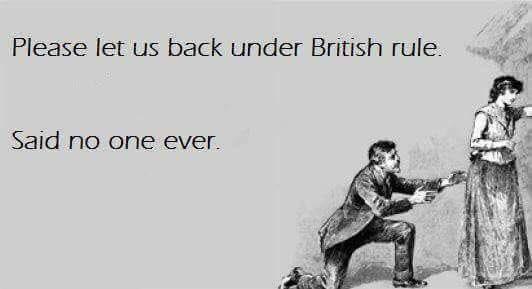 It’s too bad we have to ask another country for our independence. So nonsensical, dated and disrespectful. If England had to give back everything they have “acquired” from other nations they would end up skint. Parasites the bloody lot of them.