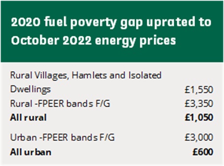 This compares to a projected fuel poverty gap of £600 in urban areas.