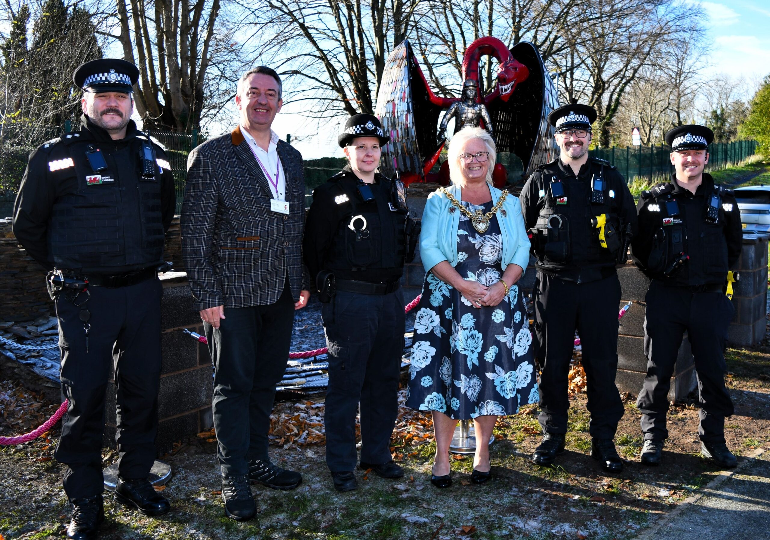 “The sculpture will stand proudly here at Bersham Road, a symbol for generations to come constructed entirely from weapons North Wales Police had collected via amnesty or confiscation.