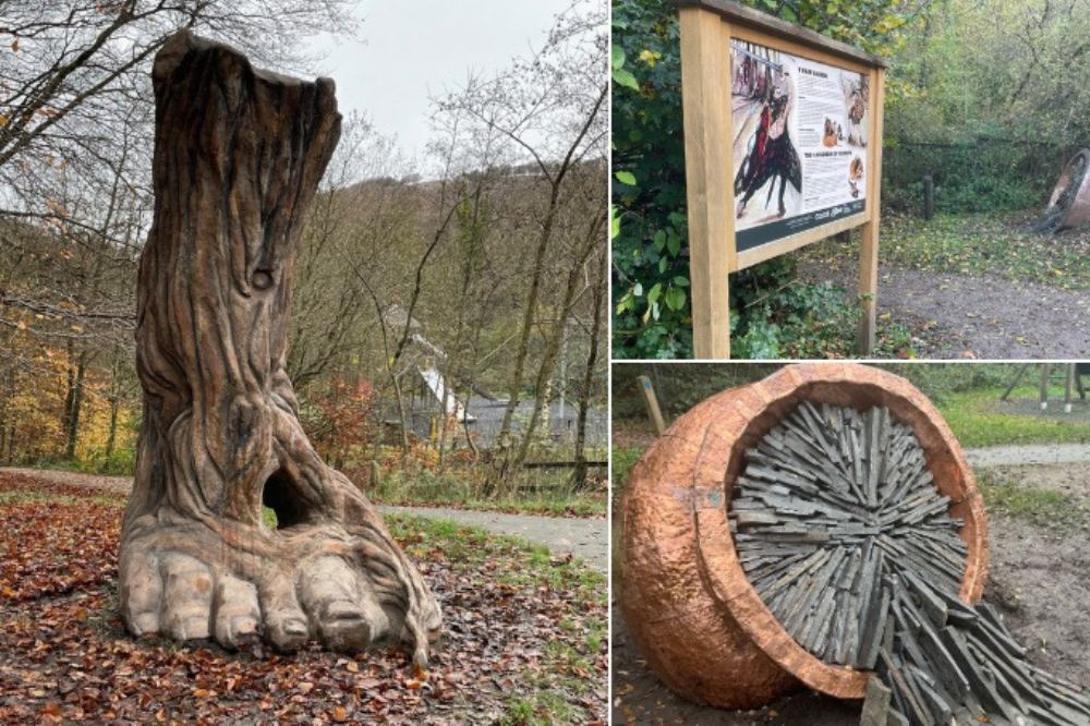 Sculptures installed at woodland lake tell the story of Welsh giant