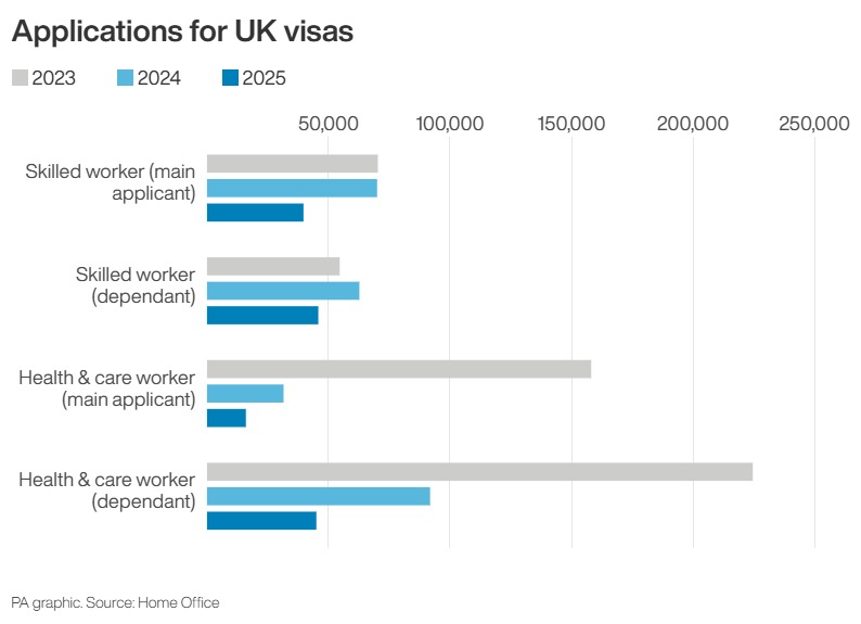 Sharp fall in skilled worker and healthcare visa applications in 2025