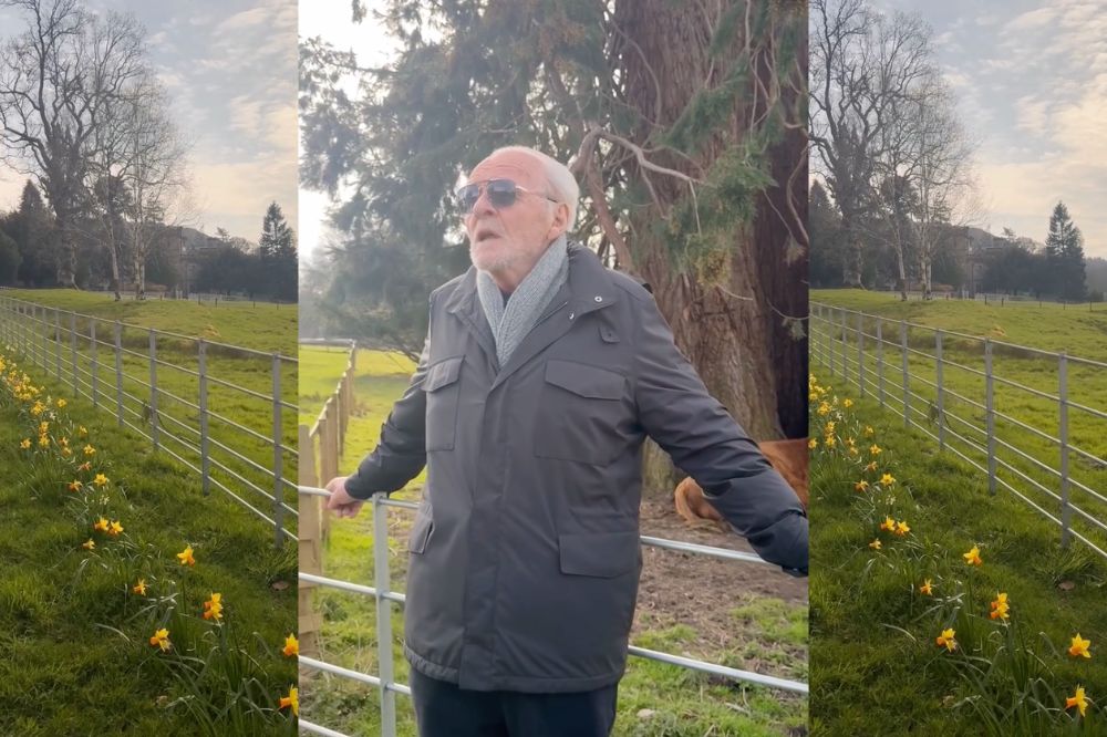 In the video, which has garnered 170,000 views, Sir Anthony reads the verse leaning against a fence with a lush green field and a cow grazing in the background, as the camera pans to a row of golden daffodils.