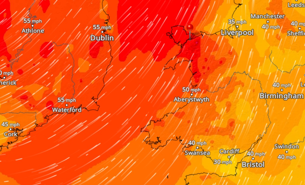Forecasters say gusts of 50 to 60mph are expected across affected areas, with speeds potentially reaching 60 to 70mph in more exposed locations, including coastal and upland parts of north Wales.