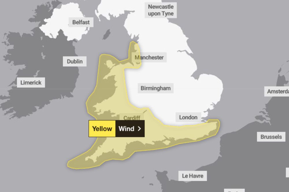 The Met Office has advised those in the alert area to prepare by protecting their property including securing loose items outside properties including bins, sheds, fences and garden furniture.