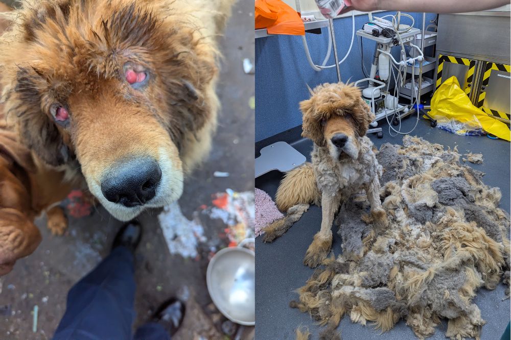 She added: “He smelt of a strong wet dog smell and appeared dirty. He lifted his head to look up to me and I was totally shocked to then see both of his eye areas with large areas of red fleshy masses that covered where his eyeballs would be. This appeared to be what I know as cherry eye from previous dealings with dogs with this type of condition but I had never seen a dog’s eyes look so full of masses.