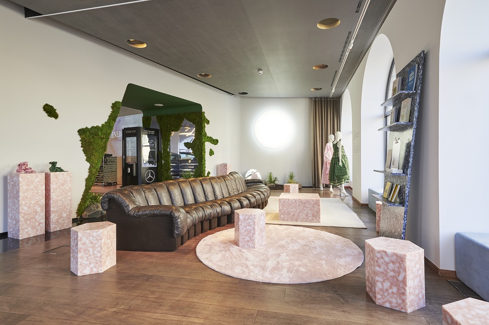 Clients include Mercedes-Benz and fashion brand Ganni. It also designs and makes side tables and chopping boards.