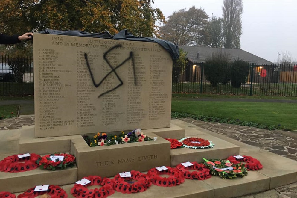 “Officers attended the scene where it was reported a neo-Nazi flag had been placed at the foot of the cenotaph, which had also been vandalised with black spray paint in the shape of a swastika.”