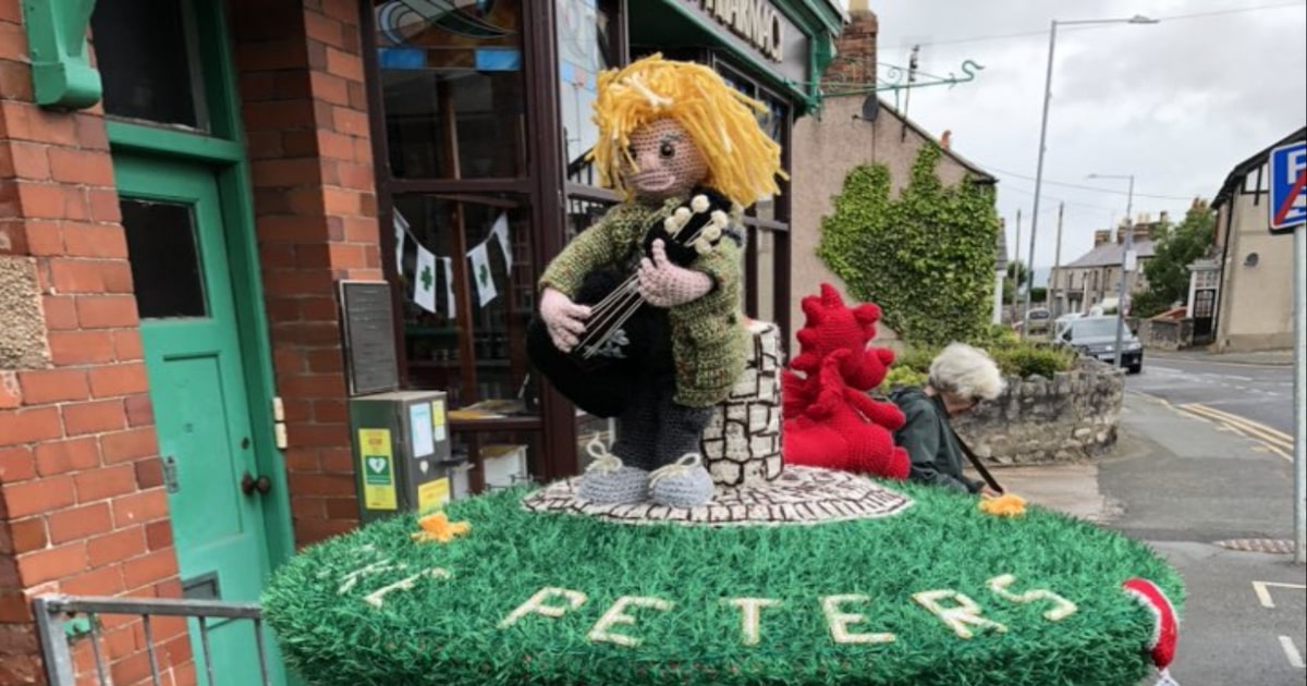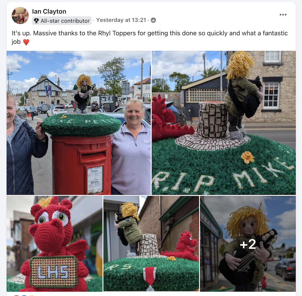 A post box topper created by a knitting group called the Rhyl Toppers has appeared atop a postbox in the village.