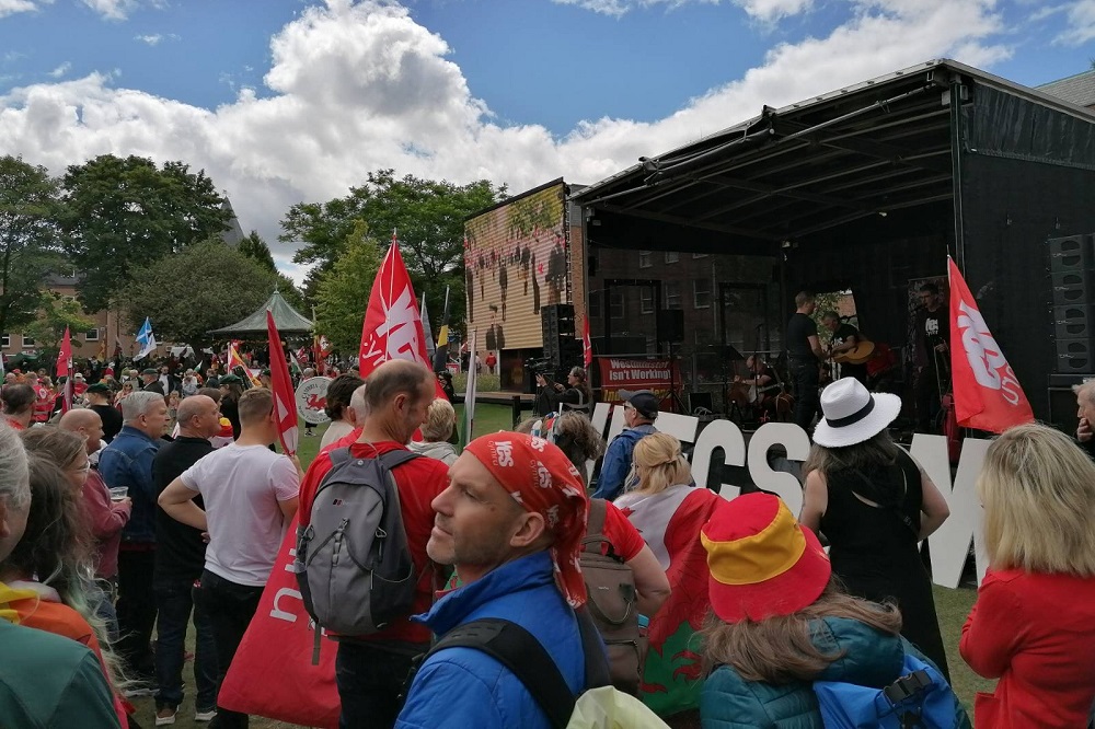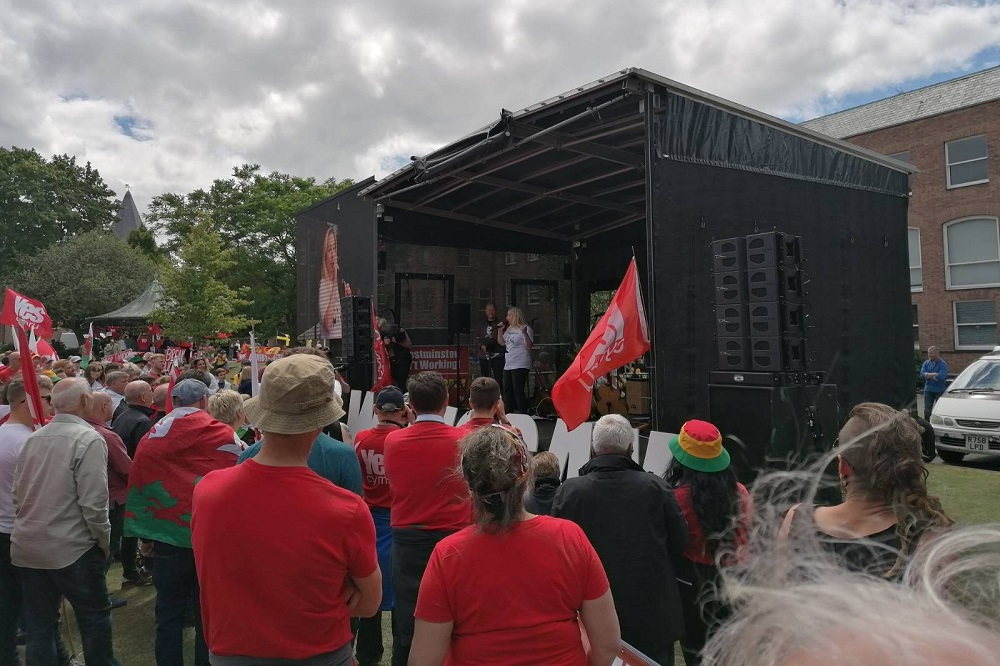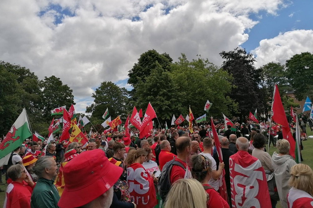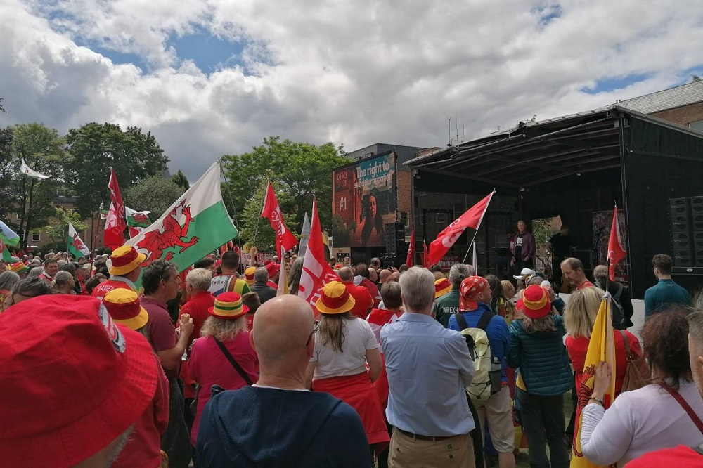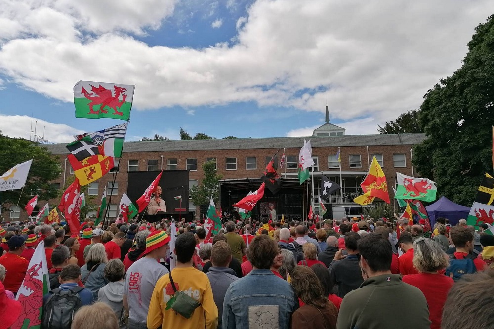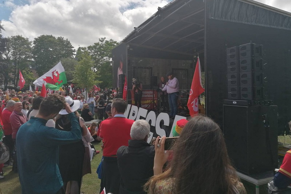 Following the march there was a rally with speakers and music, including Welsh legend Dafydd Iwan, and comedian and broadcaster Tudur Owen and a recorded video message from Mary Lou McDonald, President of Sinn Féin.