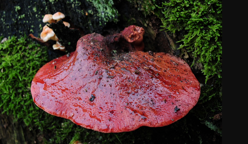 This woodland fungus has the appearance of a raw cut of meat, and even oozes a blood-like substance when cut.