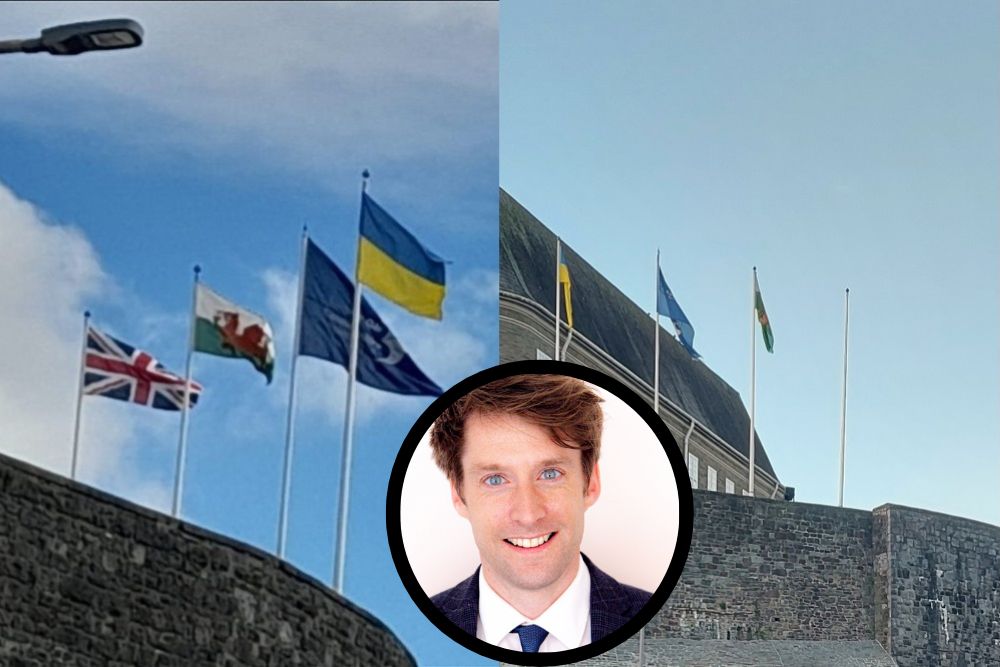 On March 9, it was decided the Ukrainian flag was to fly alongside the Welsh and county flags as a sign of that unity. These three flags have been raised since, with the Union one hoisted on designated days, such as following the death of HM Queen Elizabeth II.