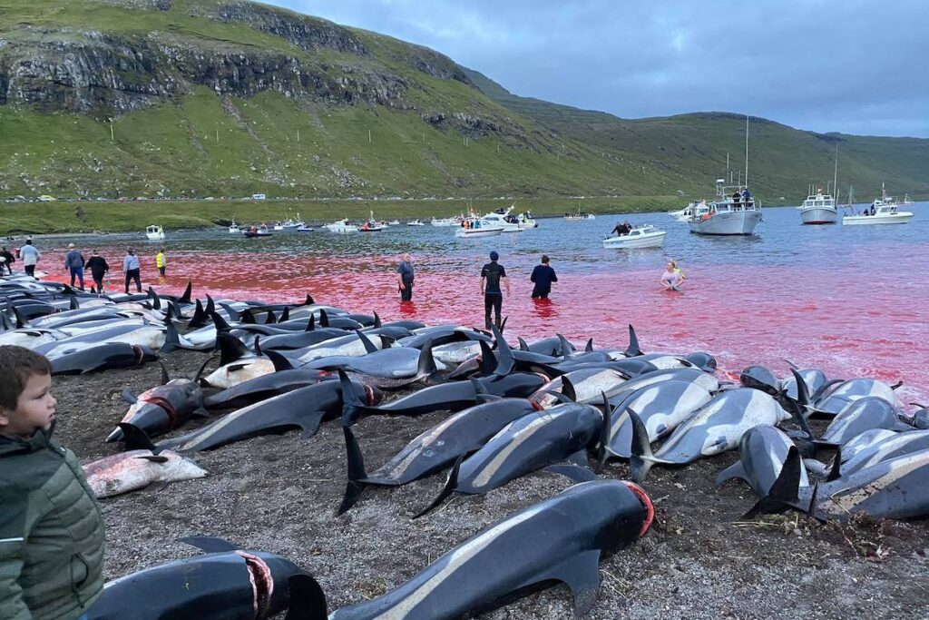 Every year in the Faroe Islands, around 1,100 small cetaceans, primarily dolphins such as long-finned pilot whales and Atlantic white-sided dolphins, are massacred in drive hunts called the ‘grindadráp’