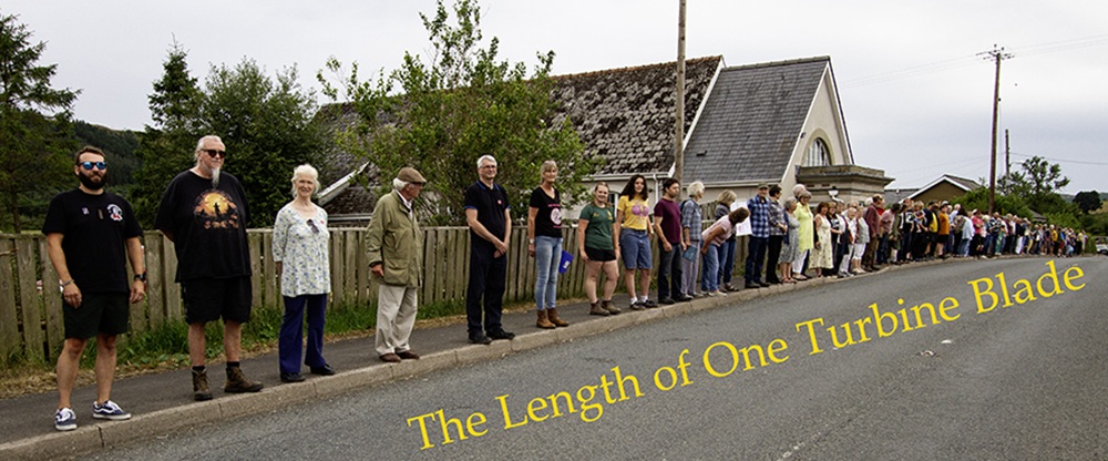 At one stage everyone loudly chanted: “Stop Bute Energy, our hills are not for sale,” and then formed a line along the pavement to reflect the length of the proposed turbine blades at around 80 metres.