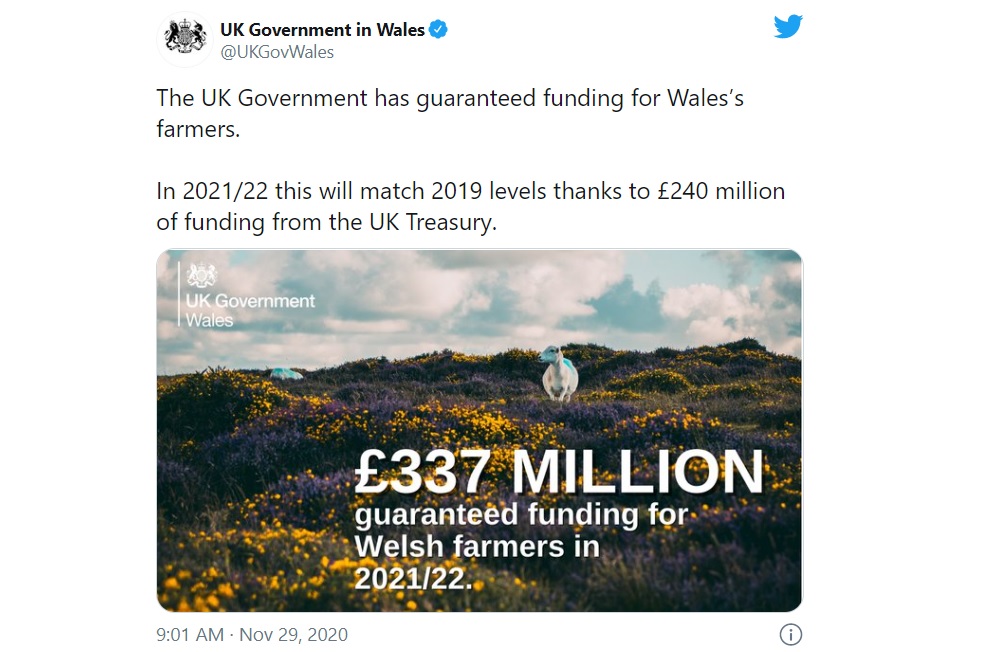 Interesting that a U.K. Govt account is publishing disputed information as fact. This is is not the view of @NFUCymru or @FUW_UAC https://t.co/wag1wBx1ns