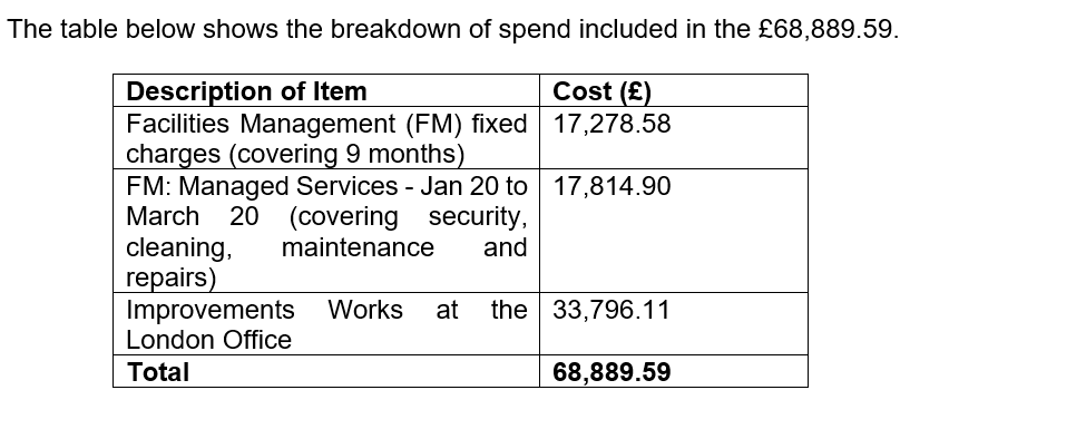 The five-figure sum spent on the grade II listed Gwydyr House on Whitehall included an undisclosed amount for “fabric maintenance”.