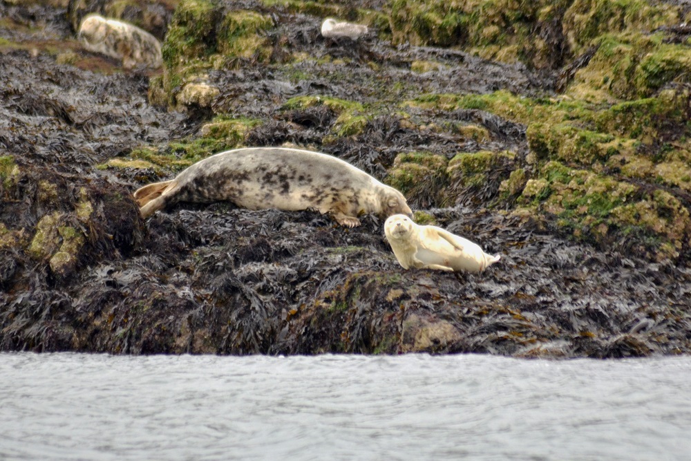 During the breeding season (September and October) you may come across white fluffy seal pups on beaches or rocky outcrops along the Welsh coast – often on their own.