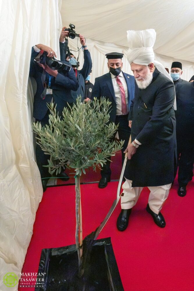 Prior to the reception, His Holiness planted a tree on the mosque grounds as a symbol of peace.
