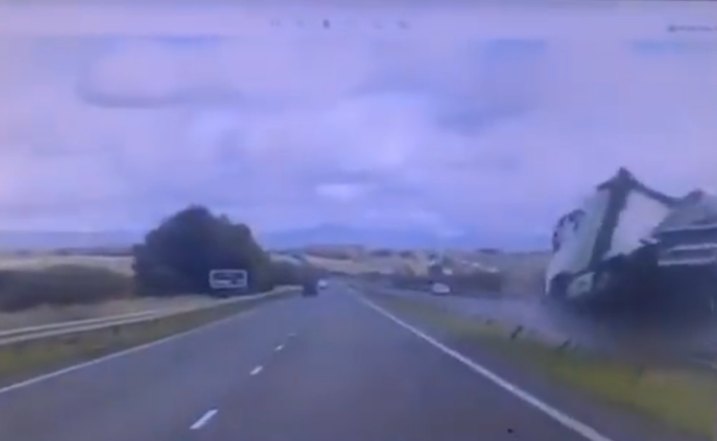 Watch: Video shows terrifying moment tanker flips over in face of oncoming traffic on Welsh road