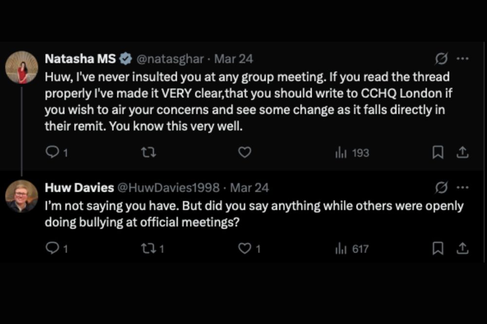 Grassroots activist and deputy chairman of the Monmouthshire Conservatives, Huw Davies, made the allegation on social media during a online spat with South Wales East MS Natasha Asghar.