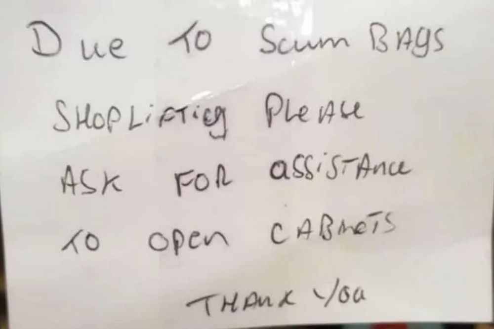I think every one of the light fingered individuals should complain the the police about the sign and then hopefully the police might take appropriate action and charge them for shoplifting!