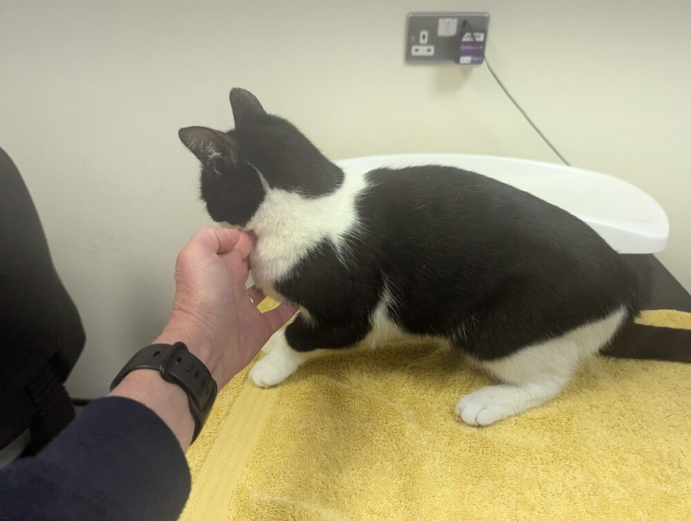 He said: “On 8 May 2025 she was returned to the clinic lame again with a five centimetre swelling on her leg, painful on manipulation of her shoulder and two scabs on the outside of the leg. She was bright and purring during the examination but, on bathing, pus started to come out of the holes. Gentle pressure was applied to get out as much as possible and she was started onto antibiotics as well as the pain relief.