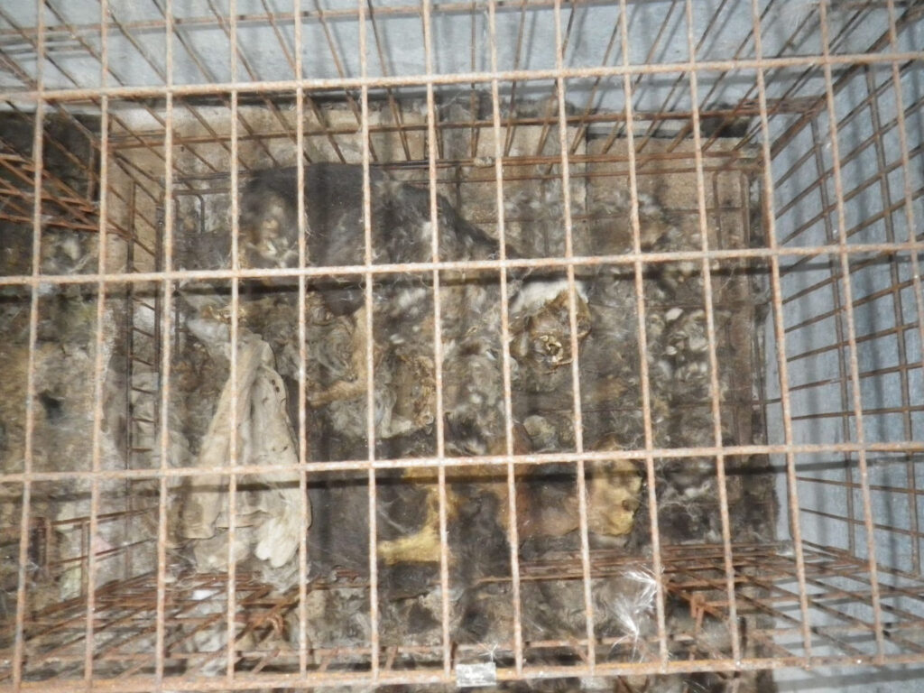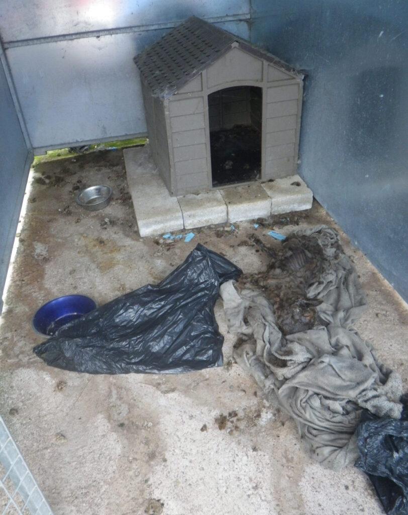 “Outside the first kennel was a black bag in which, I had been informed, was the body of the dog Precious. In the second kennel, immediately next to the first, was a small travel cage which contained the desiccated bodies of two further dogs, both French Bulldogs, with the furthest dog being slightly smaller than the nearer one. Both dogs had decomposed and were stuck to a blanket that lined the cage.