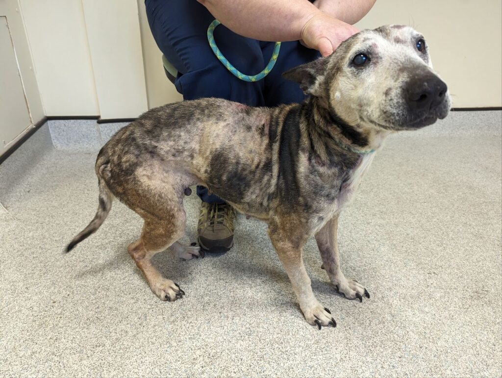 At RSPCA Merthyr Tydfil Veterinary Clinic, Sheba was examined and was given a body score of two out of nine (four and five out of nine are deemed normal).
