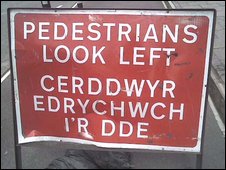 Surely someone who doesn’t read Cymraeg would look at the English signs? But yes, the wording of the Cymraeg is a bit sloppy.