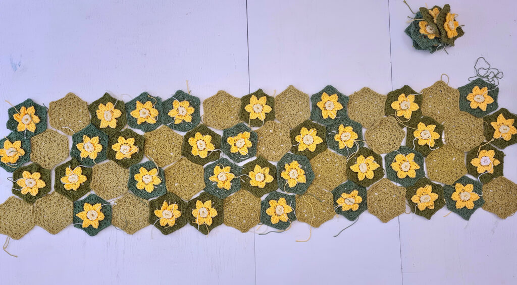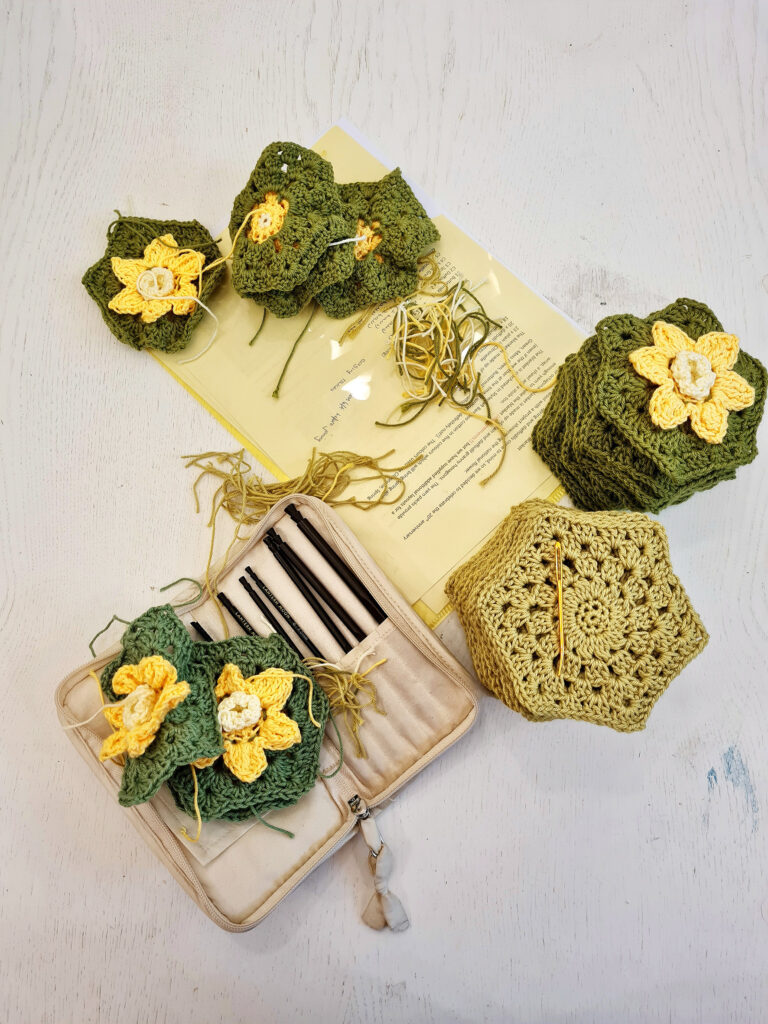 “Daffodils are synonymous with Wales, particularly at this time of year, so our crochet project is designed around the flower,” added Jenny. “We did have a moment of doubt about the number of petals on a daffodil but checked them out at St Fagan’s Museum of Welsh Life and they do have six, so our hexi-grannies design is ideal!”