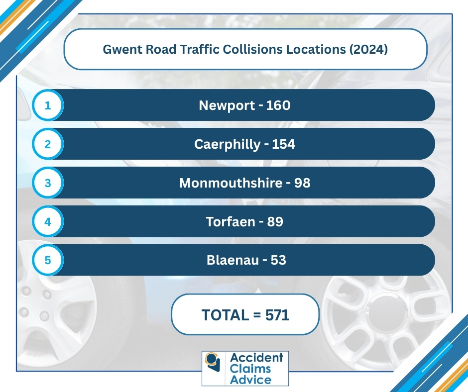 Over the past year, Gwent Police have logged 571 collisions across their area of remit, providing a breakdown of the locations where the accidents occurred.