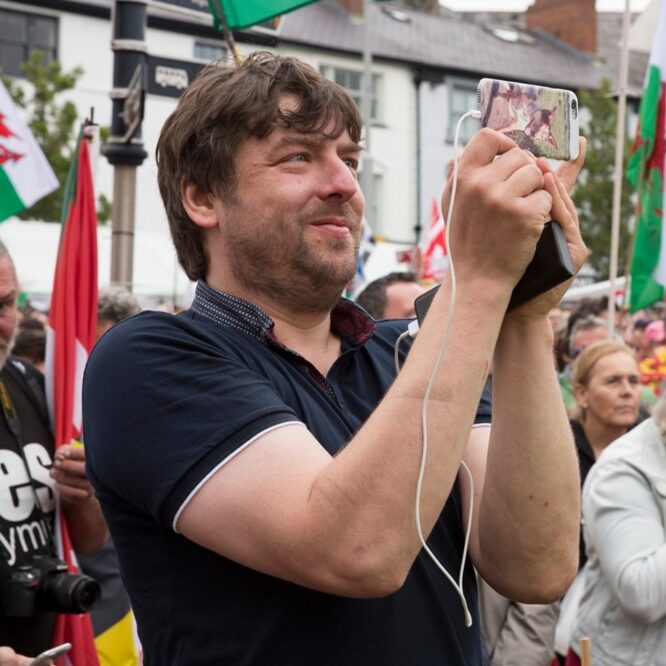 Hedd Gwynfor was part of the group that organised the solidarity rally, ‘Wales Supporting YES’, outside the Senedd in 2014 and was a YesCymru national committee member between 2016 and 2021.